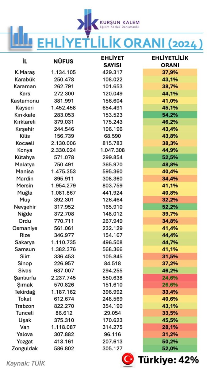 📌 Ehliyetlilik oranı YÜKSEK olan illerdeki ve hatta çevre illerdeki otomotiv markaları için bu iller, “yatırım ve potansiyel” anlamında olumlu olarak değerlendirilebilinir.