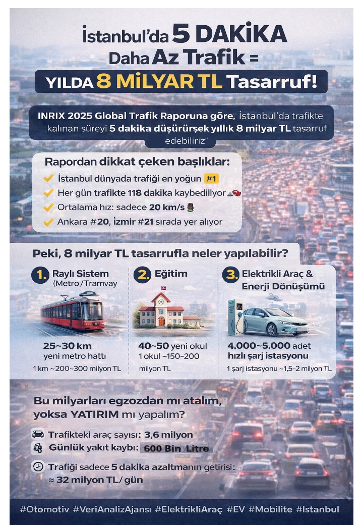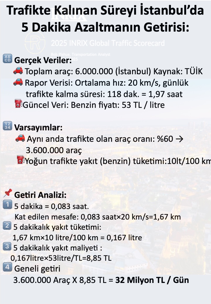 ✅ İstanbul trafiğini sadece 5 dakika azaltmanın GÜNLÜK getirisi: ≈ 32 Milyon TL