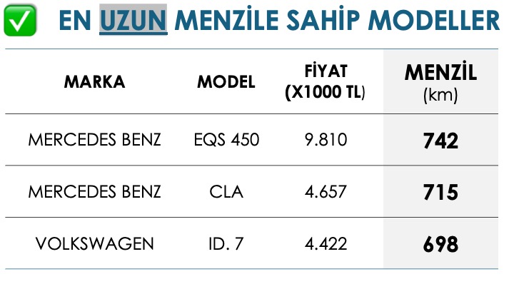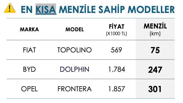 ▪️ Bu bütçe karşılığında üreticiler kaç km menzil sunuyor?