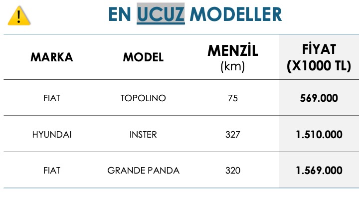 - Özellikle araç almayı planlayanlar için bu tablolar;