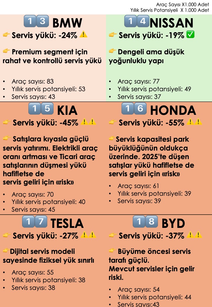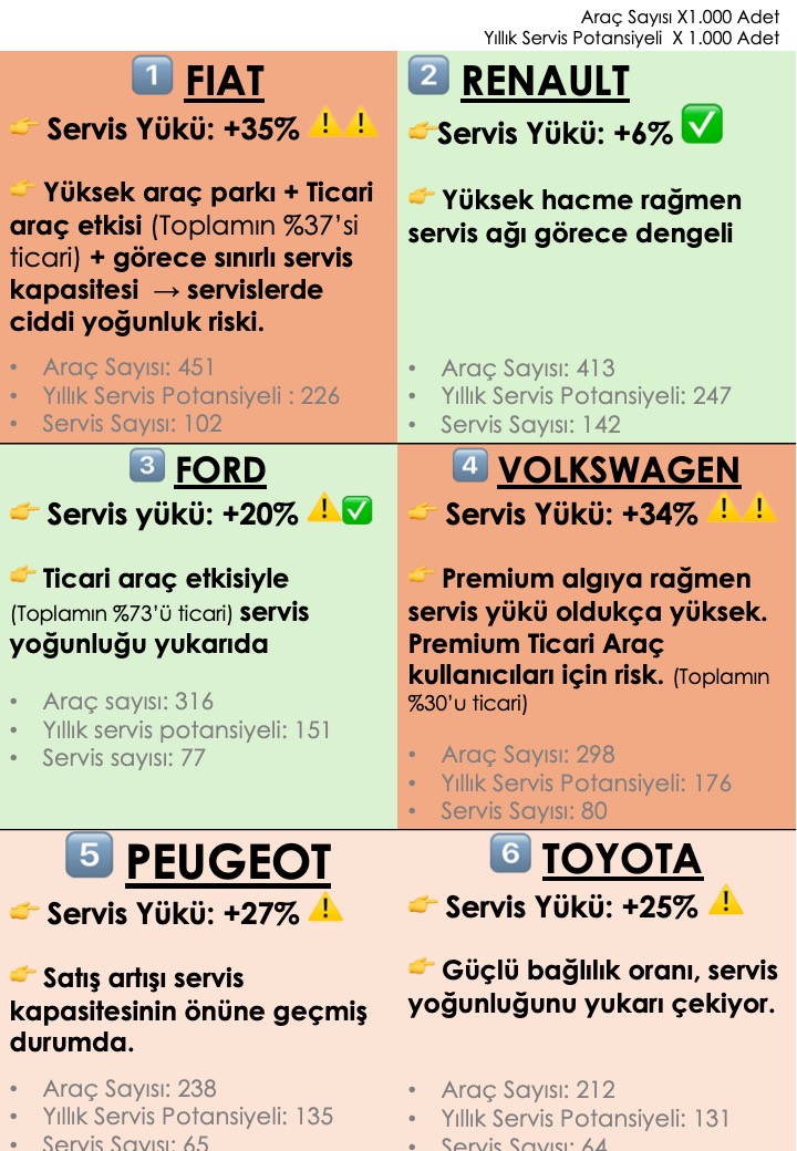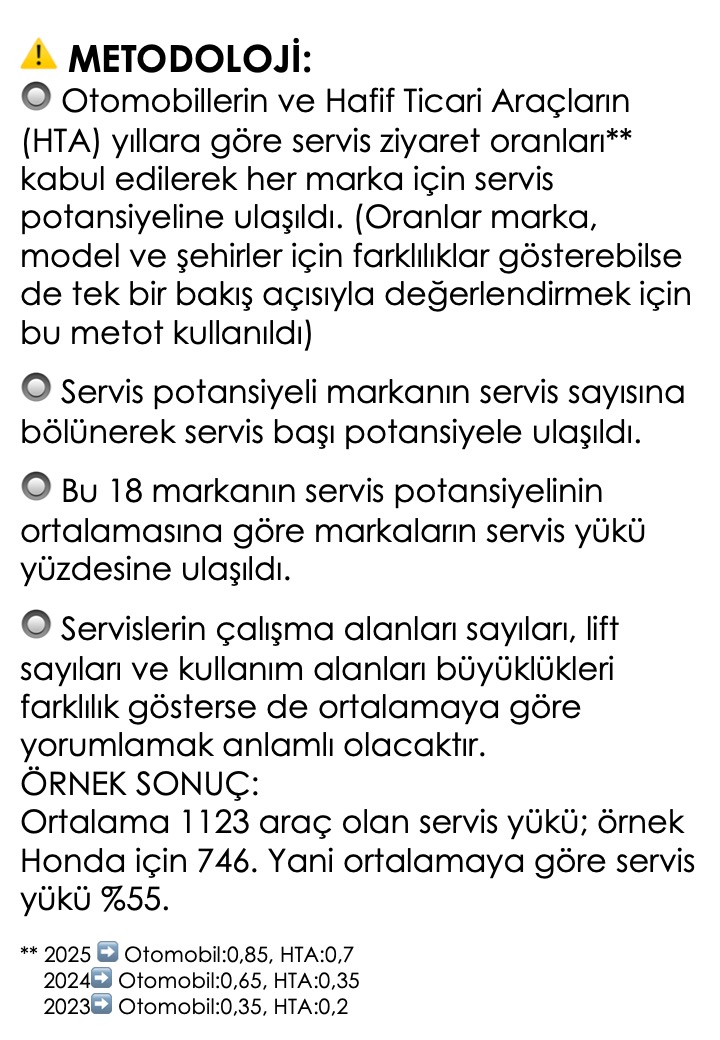 📊 2025-2024-2023 Yılı otomobil ve hafif ticari araç satışı ODMD verileri* + markaların resmi internet sayfalarındaki servis sayıları ile hazırlanan bu çalışma;