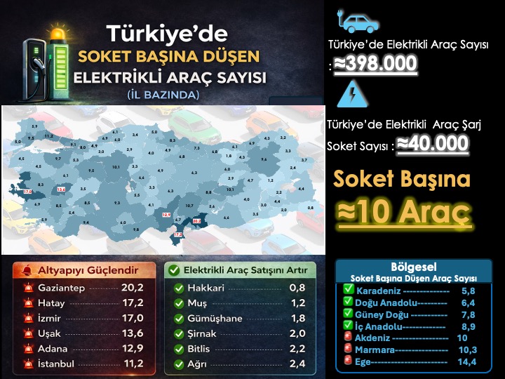 ⚠️Karadeniz ve Doğu Anadolu bölgelerinde araç sayısı düşük ya da erken altyapı yatırımı yapılmış.